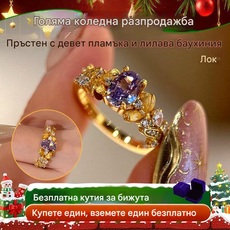 Най-продаван пръстен с цвете Баухиния за жени: Луксозен пръстен с лилави диаманти.