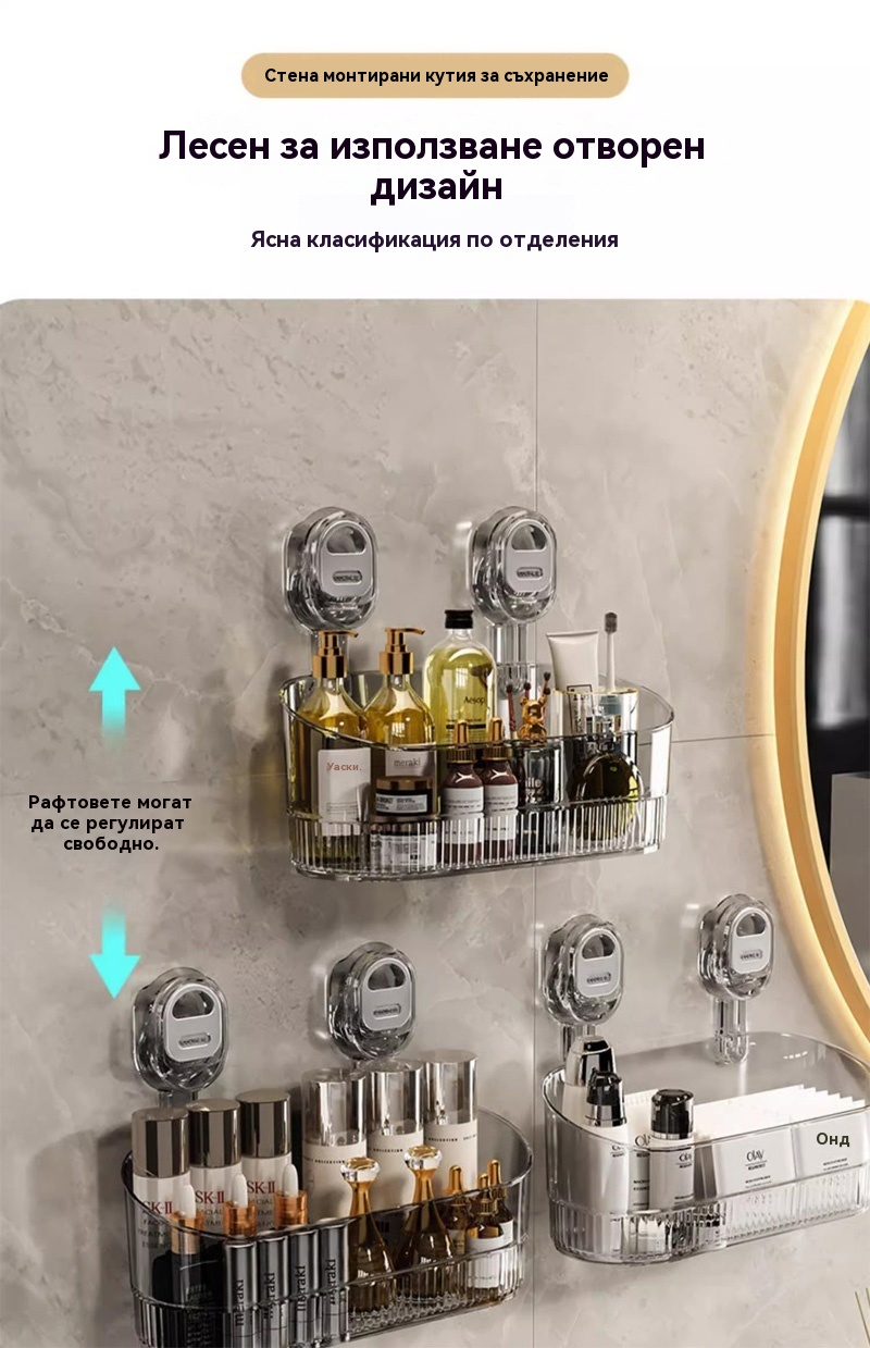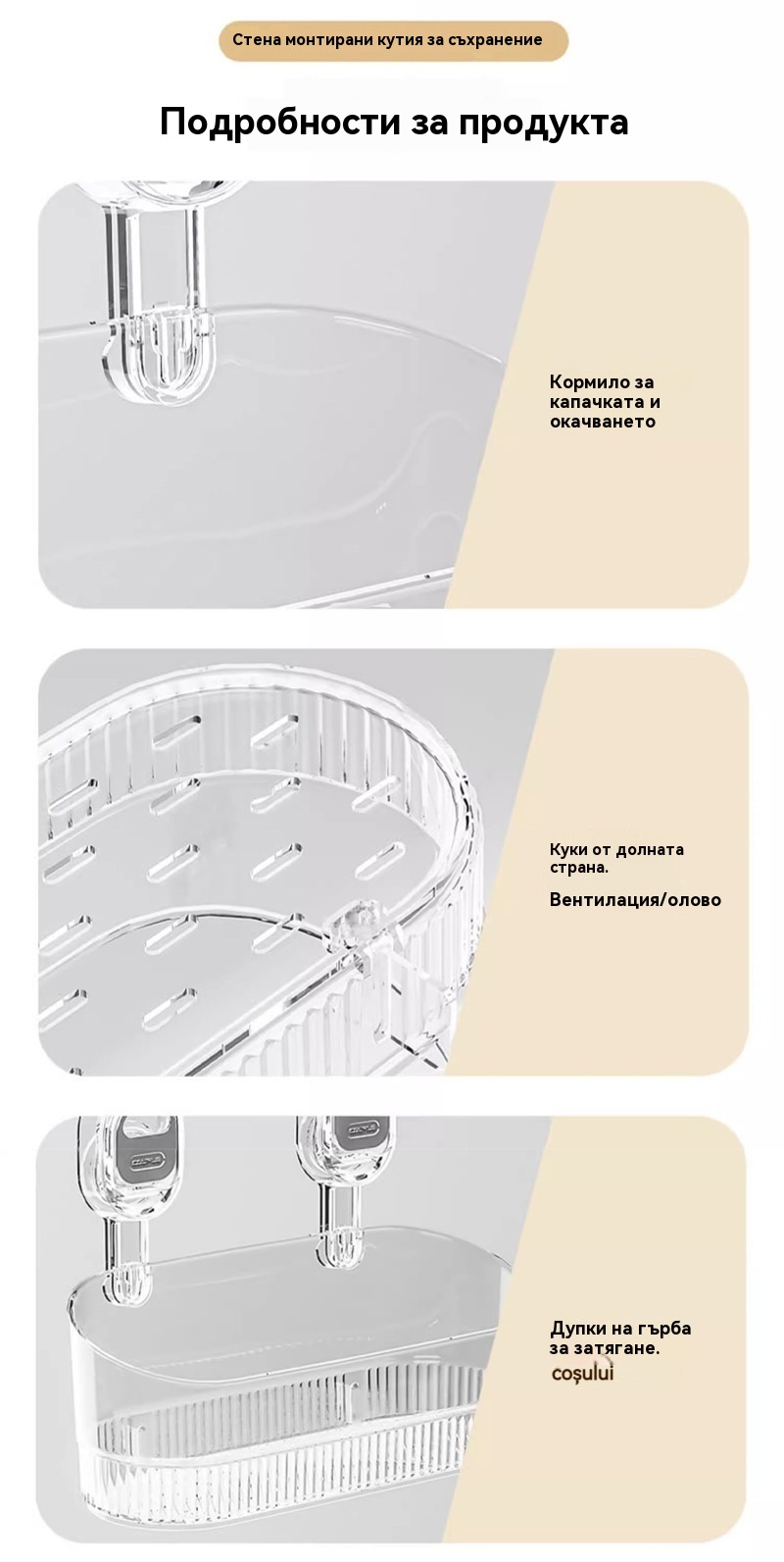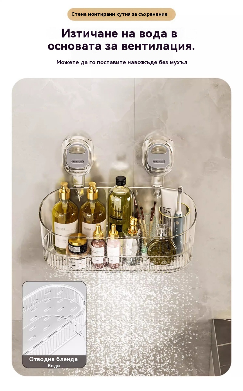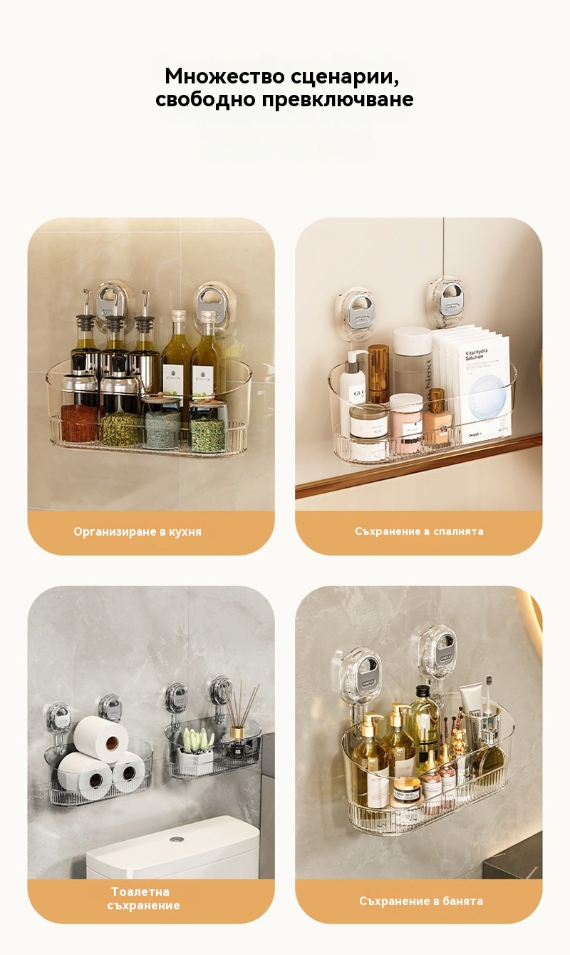 🍽️🧺Стелаж за съхранение с вендузи без перфоратор, стенен стелаж за сифон за кухня и баня
