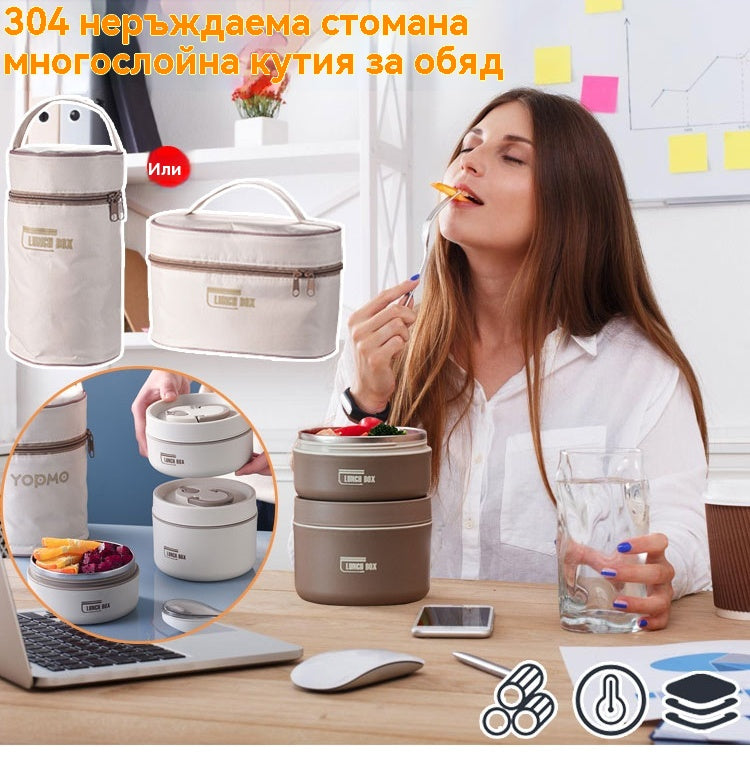 304 термос кутия за обяд от неръждаема стомана, многоетажна преносима кутия за обяд, може да се постави в микровълновата фурна